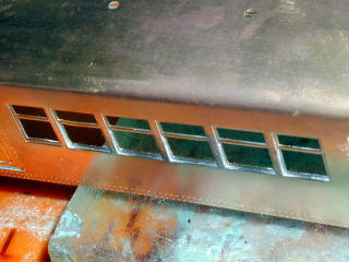 ウィンドシル・ヘッダーを貼り付けました。キット添付のリベット付き帯板です。
