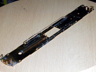 写真では中央梁・床下機器取り付け台と、側面配管なども付けた後です。